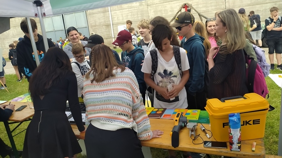 Studentky z oboru Průmyslová ekologie (745.35 kB) – Obnovitelné zdroje energie připravily soutěž pro návštěvníky o „nejsilnější fuk“, měřeno anemometrem. Hosté si mohli vyzkoušet tento přístroj a porovnat svůj vítr s tím opravdovým. Velmi zajímavá byla práce s termo-kamerou a pro dospělé byl připraven průřez tepelným čerpadlem, jako jednou z možností, jak využít obnovitelné zdroje v domácnostech. Zástupce společnosti ENKIS poradil, jaké jsou dotační možnosti a poskytl tak komplexní energetické poradenství. Individuální přístup byl velmi kladně hodnocen.