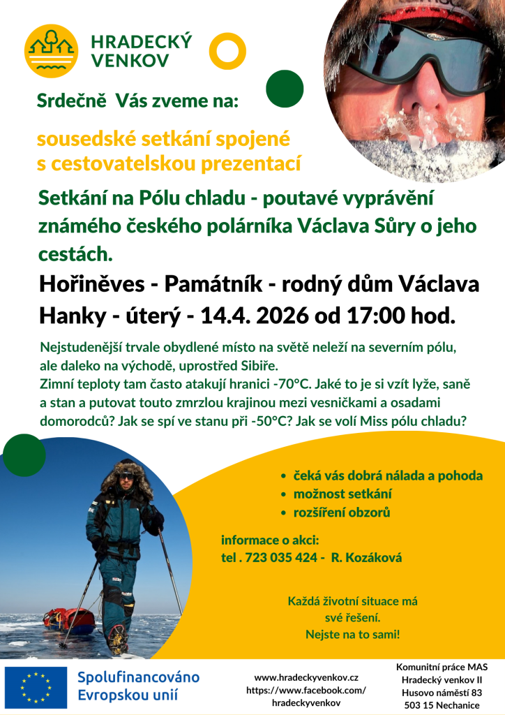 Sousedské setkání, cest. prezentace - Hořiněves - 14. 4. 2026
